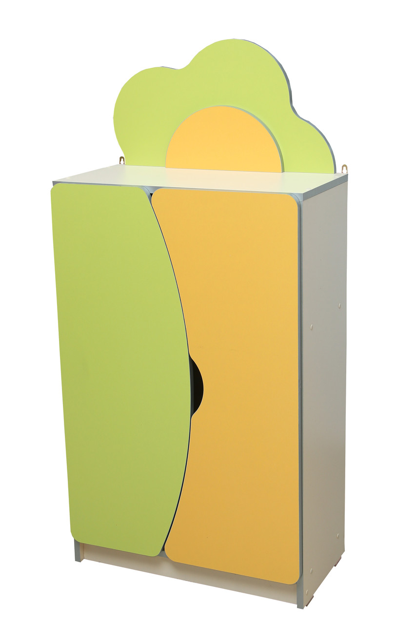 Стеллаж для іграшок призначений для комплектації дитячого садка. Виготовлений із ламінованої ДСП. Яскраві кольори стелажика забезпечують святковий настрій, а дизайн — зручність використання. Стеллаж доступний тільки в таких кольорах: жовтий, беж, лайм.