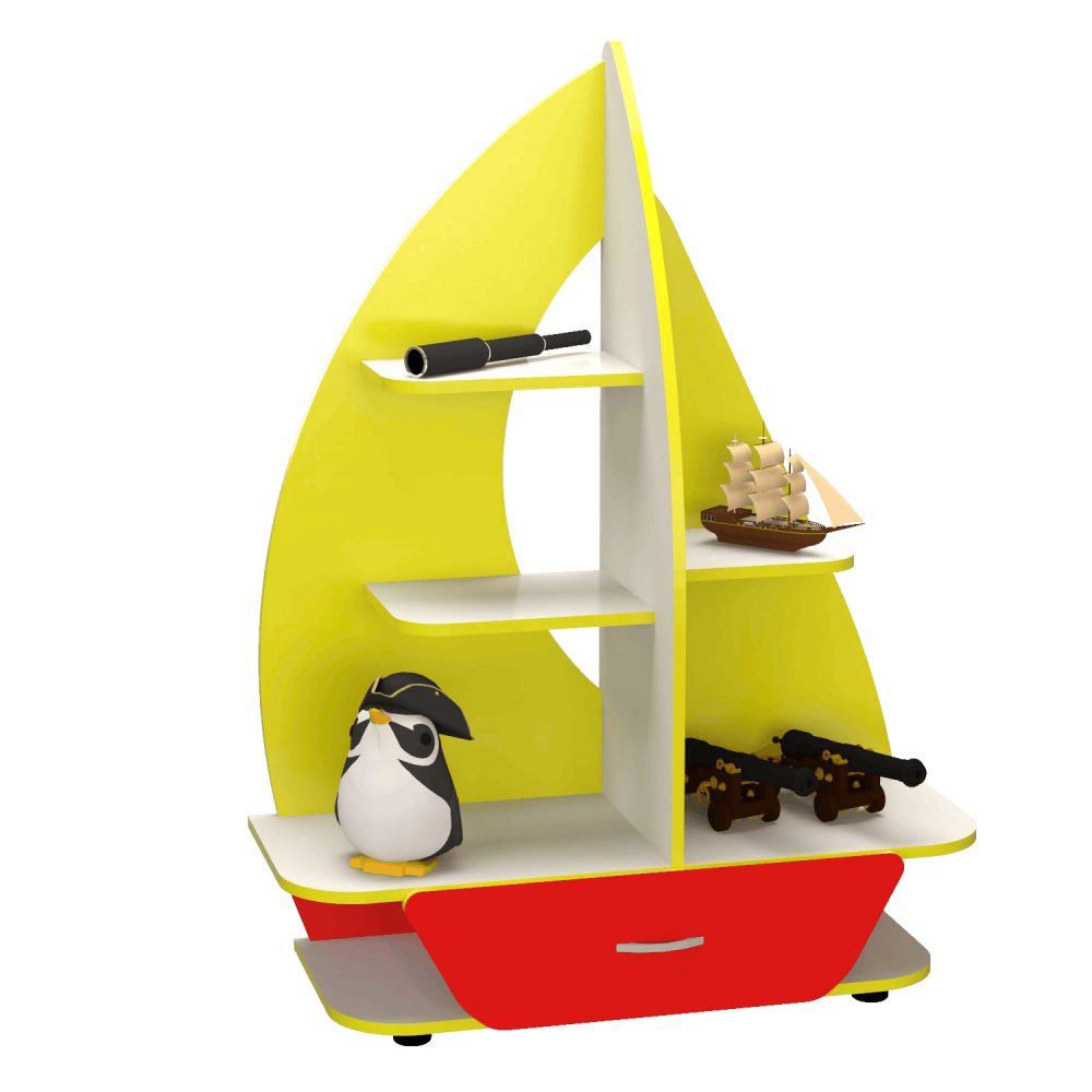 Стеллаж для іграшок призначений для комплектації дитячого садка. Виготовлений із ламінованої ДСП. Яскраві кольори стелажика забезпечують святковий настрій, а дизайн — зручність використання. Стеллаж доступний у таких кольорах: основа — білий, додаткові кольори: червоний + жовтий, червоний + синій, жовтий + лаванда, жовтий +зелена вода.
